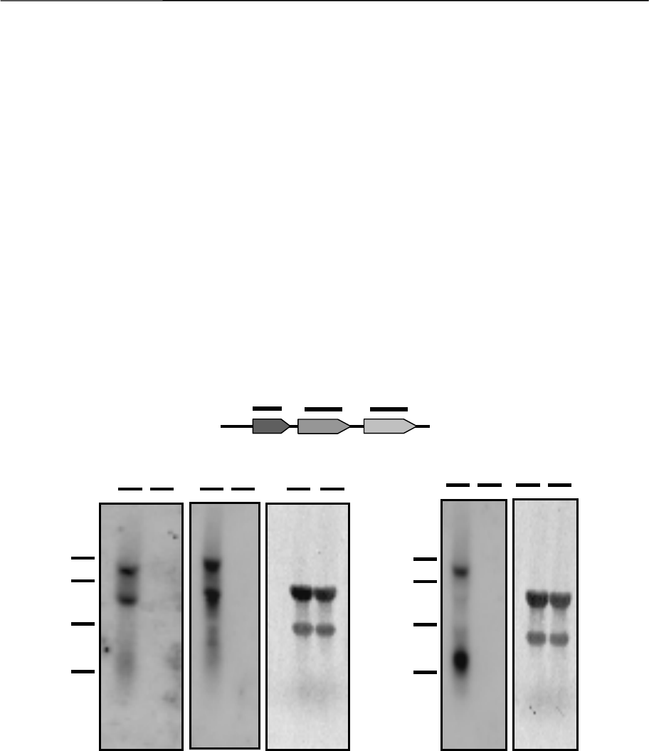 rRNA 23S und 16S. D: Autoradiographie nach einer Northern-Hybridisierung mit der Sonde III mit